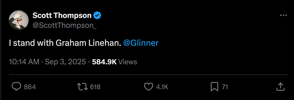 And Scott Thompson is now one of Linehan’s defenders, which sucks big-time for me as a transmasculine comedian and long-time fan.